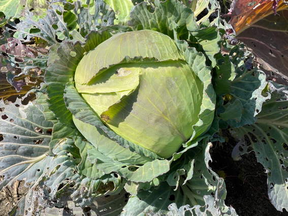 近いうちに収穫しないとヒビ割れしそうなキャベツ