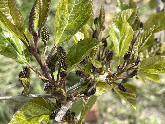 発芽とともに蕾も付けている西洋桑(マルベリー)です