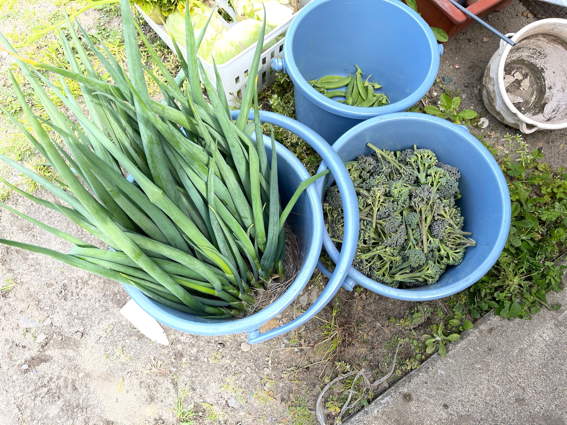 九条ネギやブロッコリーの側花蕾も収穫しました