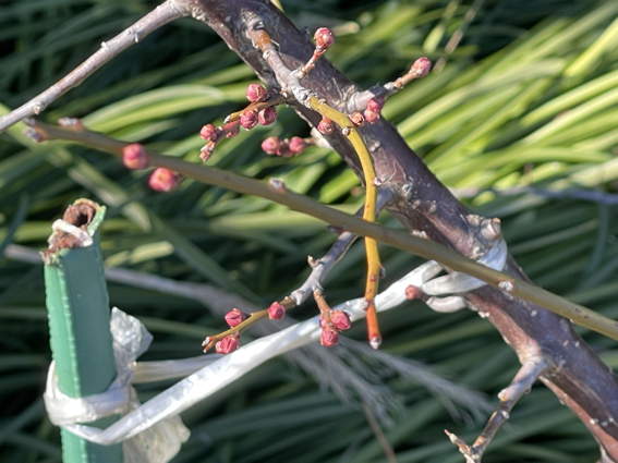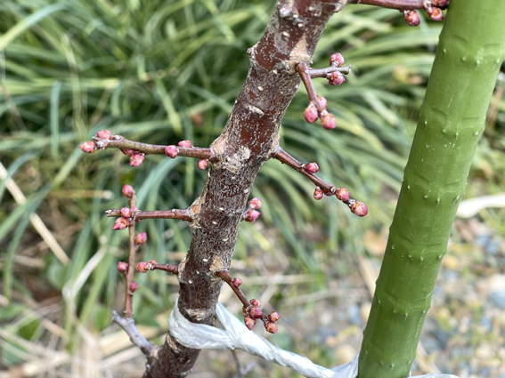 盆栽から移植した梅の花芽です