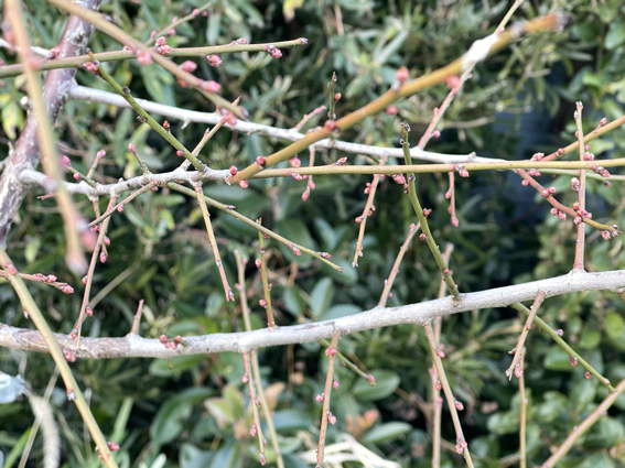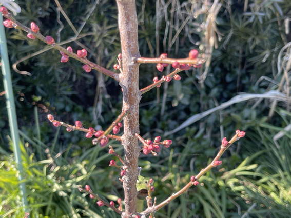 こちらは南高梅の花芽 たくさん実をつけてほしいなー
