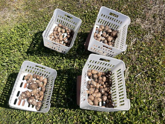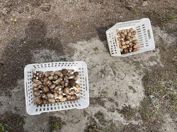 里芋も掘り出して水洗いした後に風乾しています