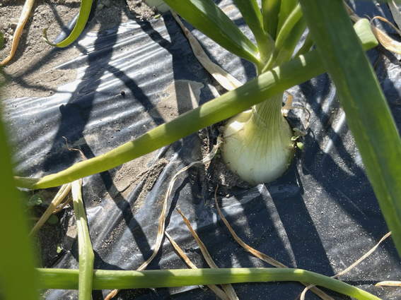 中生のタマネギですがもう玉ができてますね