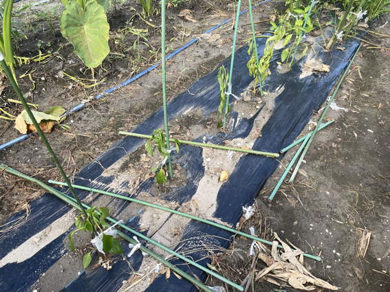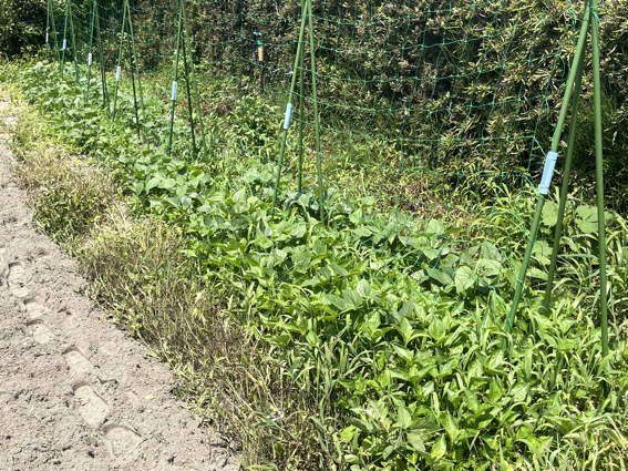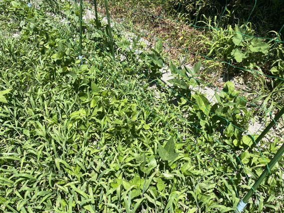 右のササゲは雑草だらけで何とかしなければとは思ってますが…