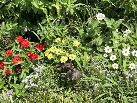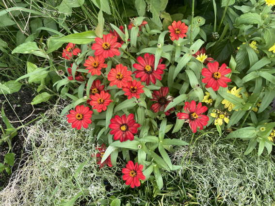 こちらは背の低いジニアですが頑張って咲いてます