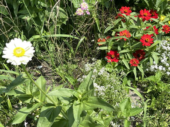 左の白いジニアは去年からのだそうです