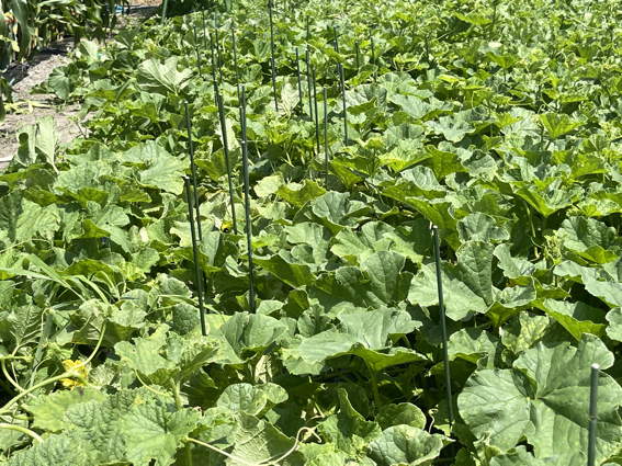 ニューメロンがある所に棒を立てました 今33個ありますよ!