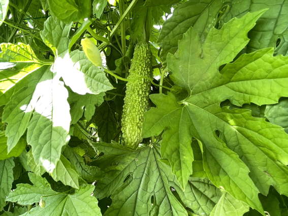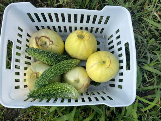 ニューメロンを5個収穫しました ゴーヤも調子悪そうですが