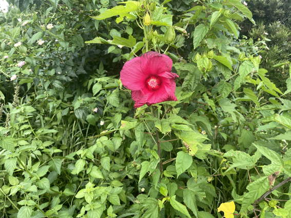 タイタンビカスがよれよれに咲いてます