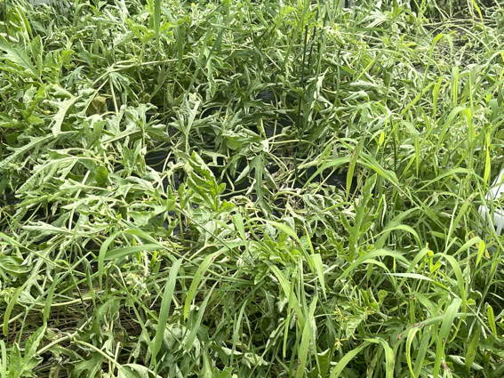 雑草かスイカか? 全滅ではないのですがスイカは水に弱いです