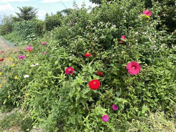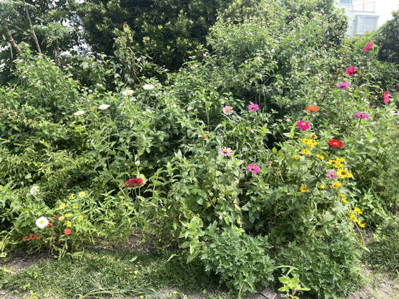 タイタンビカスとジニアの畑 ランターナもありますけどね