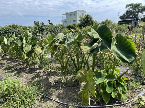 里芋は中心の葉だけ残してあります さてどんな芋が採れるかな?
