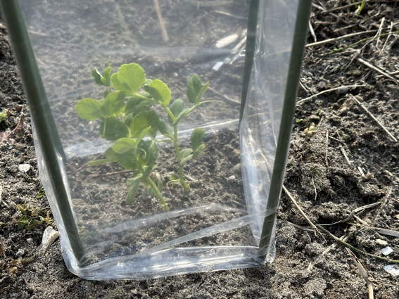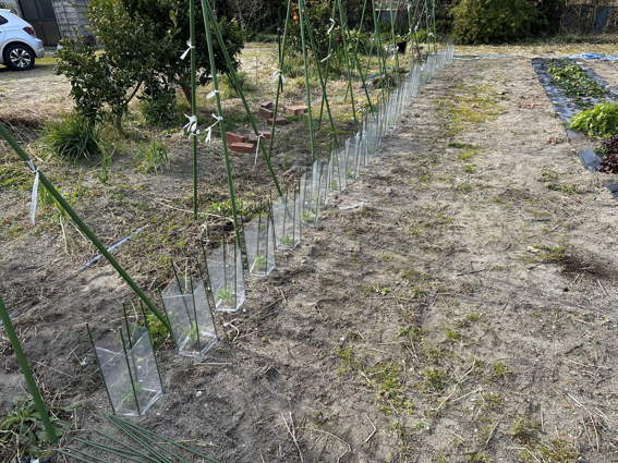 農場にやってきました 先月移植したスナップエンドウを