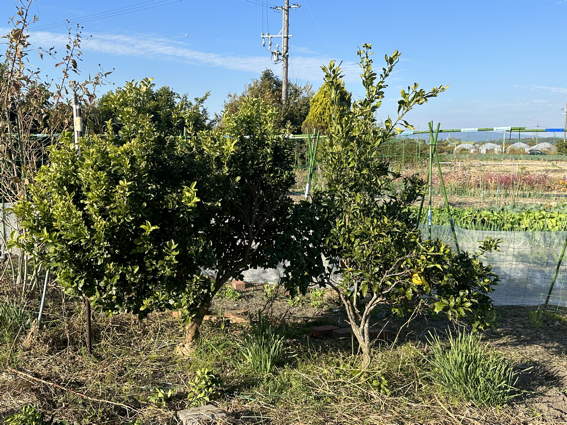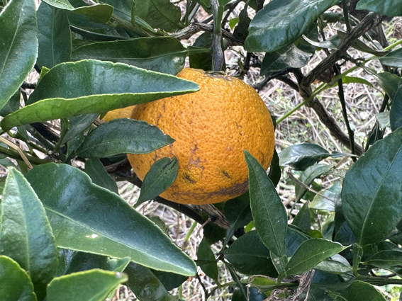 左の大玉キンカンが右のデコポンに迫っていたので枝を切りました