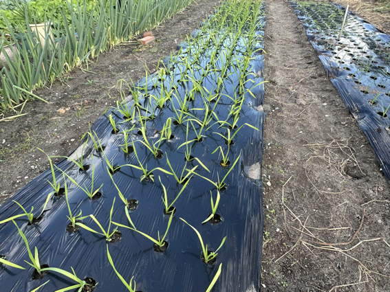 タマネギ畑に余裕があったので晩生(おくて)の苗を近所で