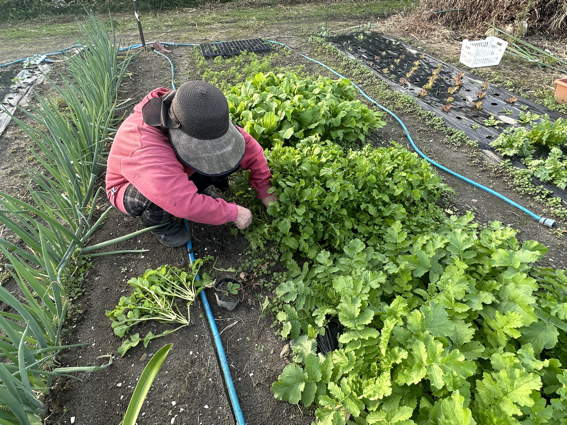 スナップエンドウの苗も移植しようと ゆり様と農場にやってきました