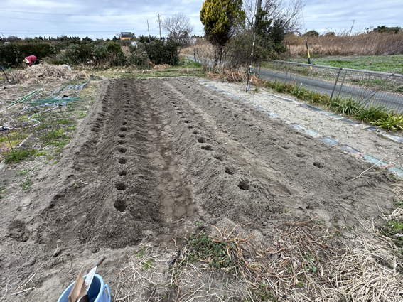 ジャガイモ畑を作って85個の種芋を植えました
