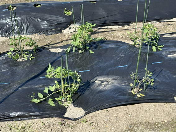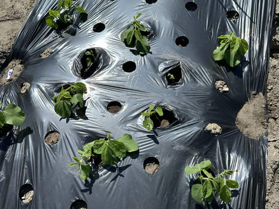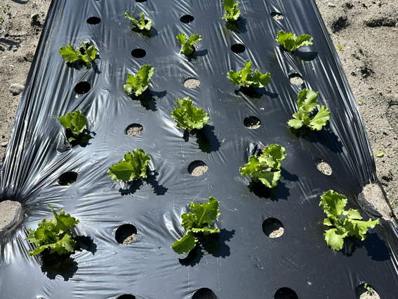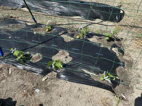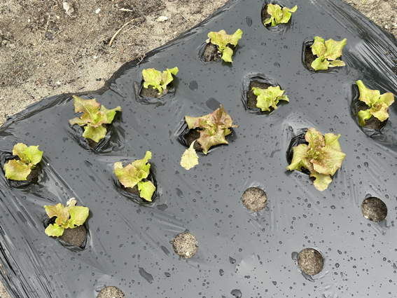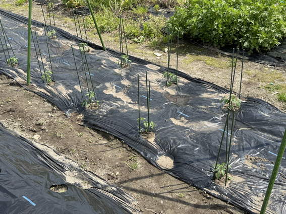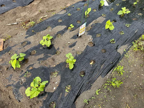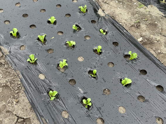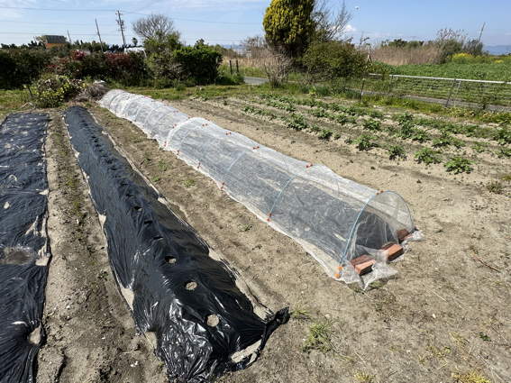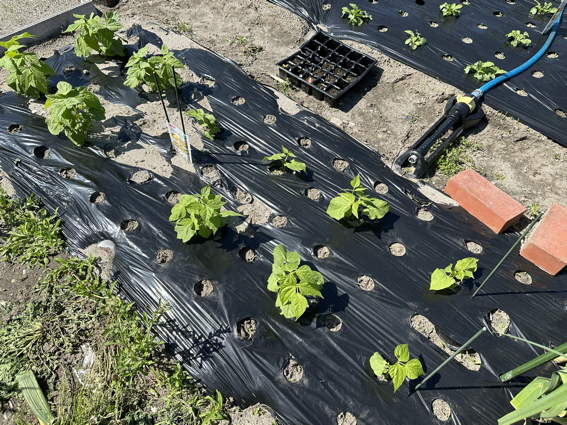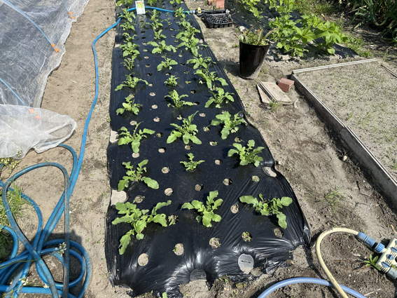 ポリマルチを掛けてから安城で育てた苗を植えました