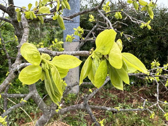 次郎柿の若葉が出てきました 蕾はたくさんあるかな?