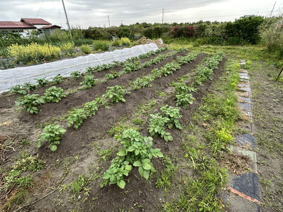 ジャガイモ畑 少々歯抜けですが ま たくさん収穫できるでしょう
