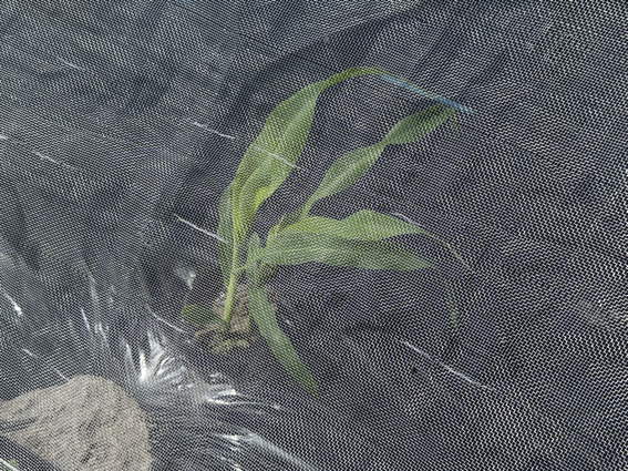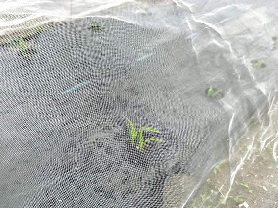 トウモロコシの種を蒔きました 鳥にやられないように防虫ネットを