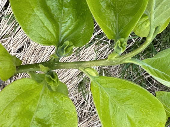 次郎柿もあっという間に葉っぱが広がります