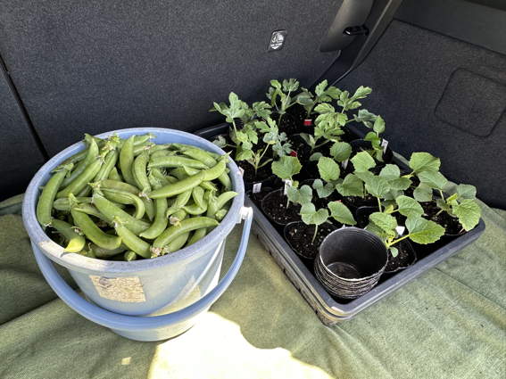 左はスナップエンドウ 右は大根の間引き菜です