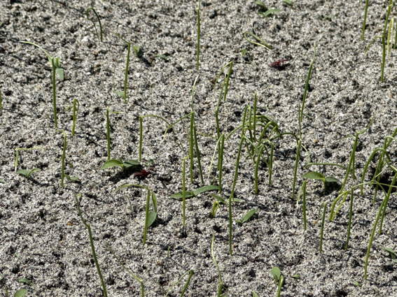 ところどころ歯抜けですがトウモロコシの芽が出ています