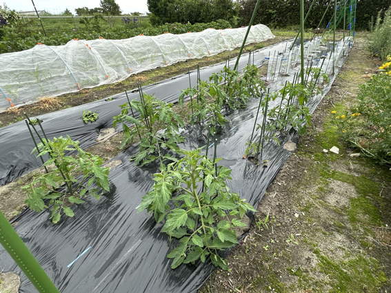 トマト用の支柱を立てましたがナスやピーマンにもこのような