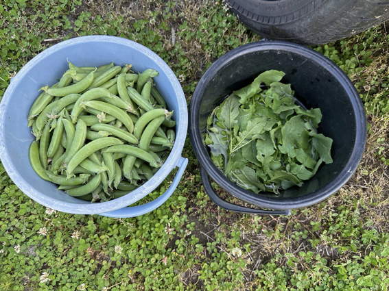 スナップエンドウがバケツいっぱい収穫できました