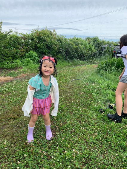 スプリンクラーでビショビショの蓮ちゃん