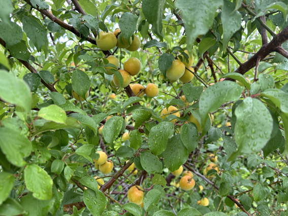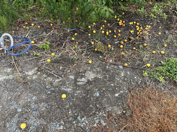 南高梅が熟してきて かなり地面に落果してました