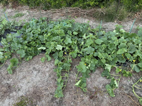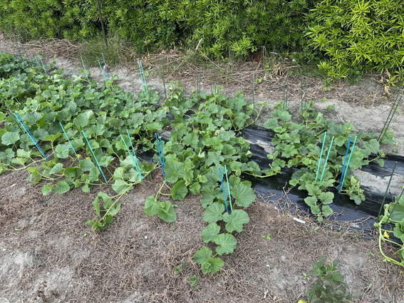 ちょっと葉っぱの色が悪いのが心配なメロンです