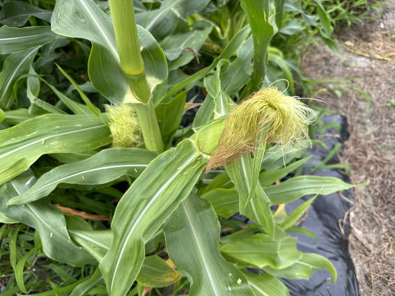 昨日は雨が降っていて雌穂に花粉がうまく付かないのでは と