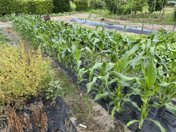 手前は枝豆で 向こうは第二弾のトウモロコシです
