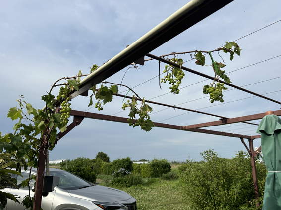 ちょっと葉っぱがみずぼらしいですが ブドウです