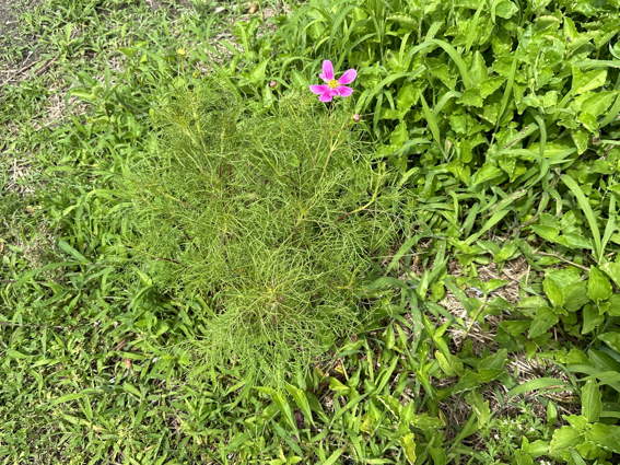こぼれ種から育ったコスモスに花がつきました