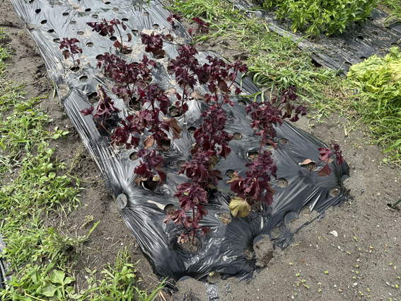 あちこちに生えていた赤紫蘇を移植しています