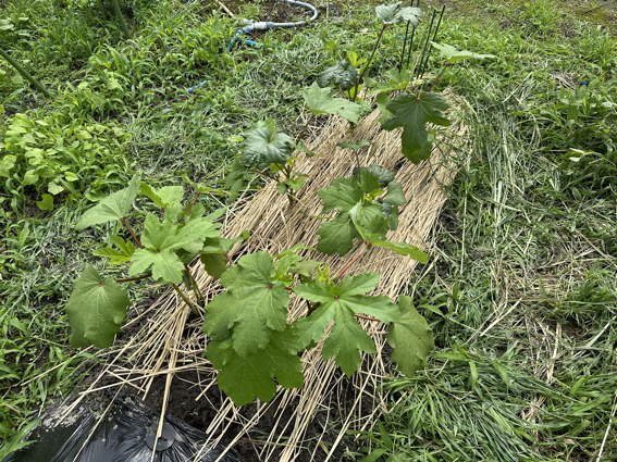 ローゼルハイビスカスも雑草除けの切りワラを施しました