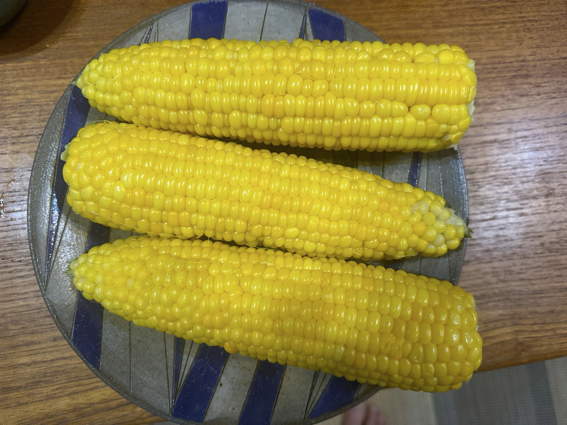 初どりトウモロコシをゆり様に茹でてもらいました