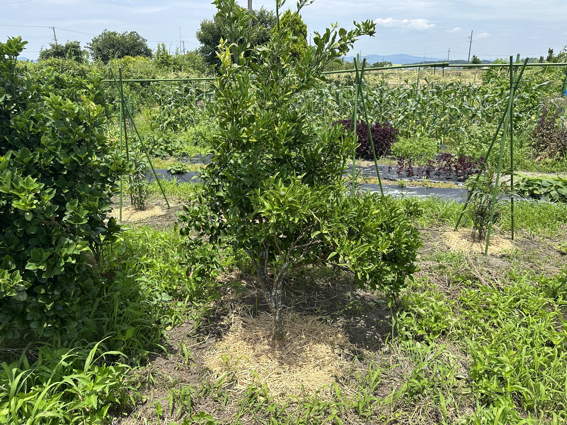 次郎柿の下に敷き藁をしたら雑草が減りましたので