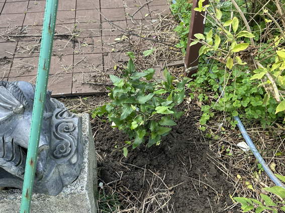 ゆり様が友人からいただいたクレマチスをブドウだなの近くに移植しました