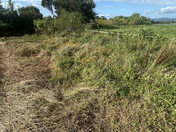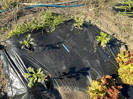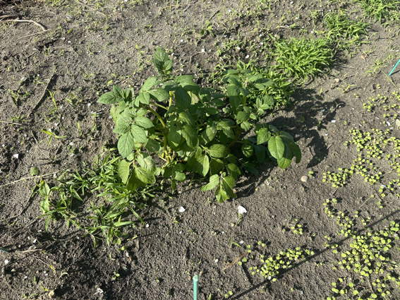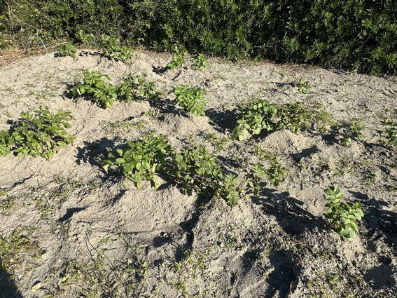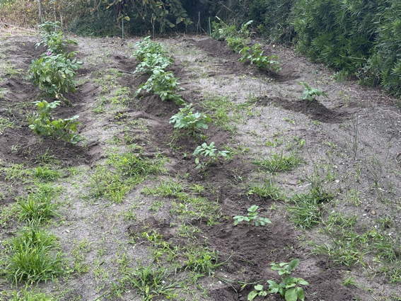 ルッコラですが左端はジャガイモのために肥料を入れたところです