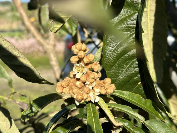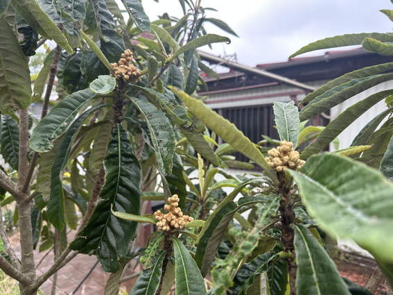 ビワの花も咲き始めましたね 久しぶりに自家製のビワが楽しめます