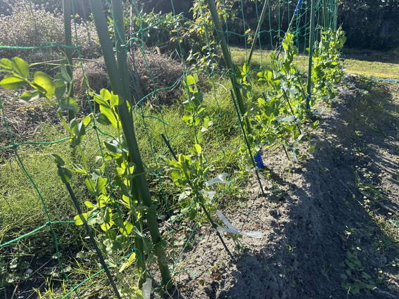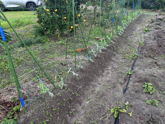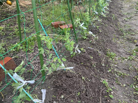 スナップエンドウがネットに巻き付くようにしばっておきました