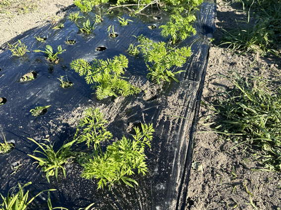 発芽率が悪いですがニンジンがところどころ
