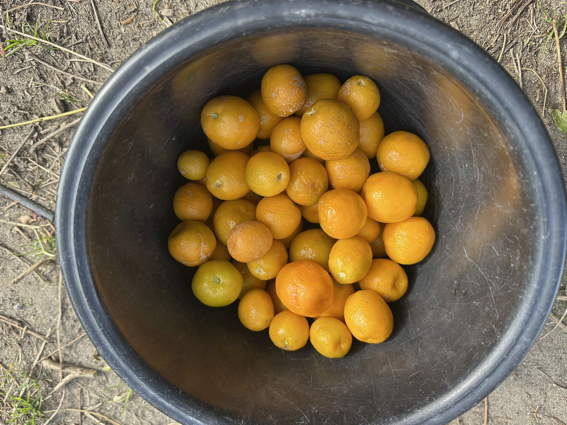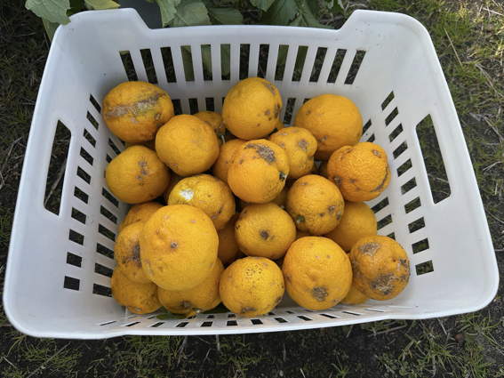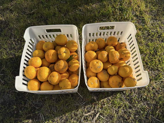 ユズを全部収穫しました ここには79個あります
