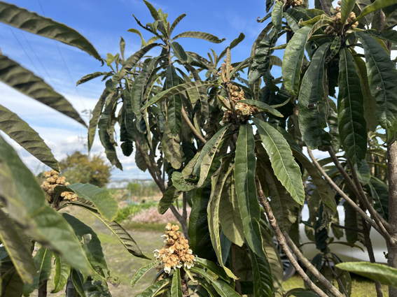 ビワの花が咲いています