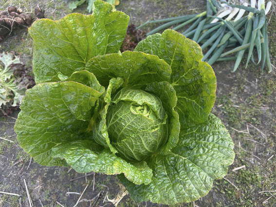 白菜も初めて収穫しました よく締まっています