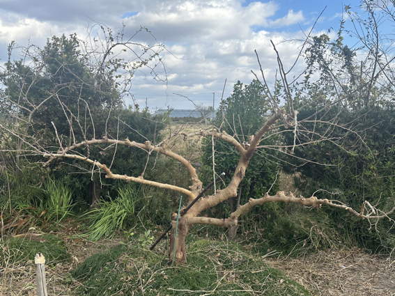 このイチジクも剪定しました 枝を水平に曲げようと思います